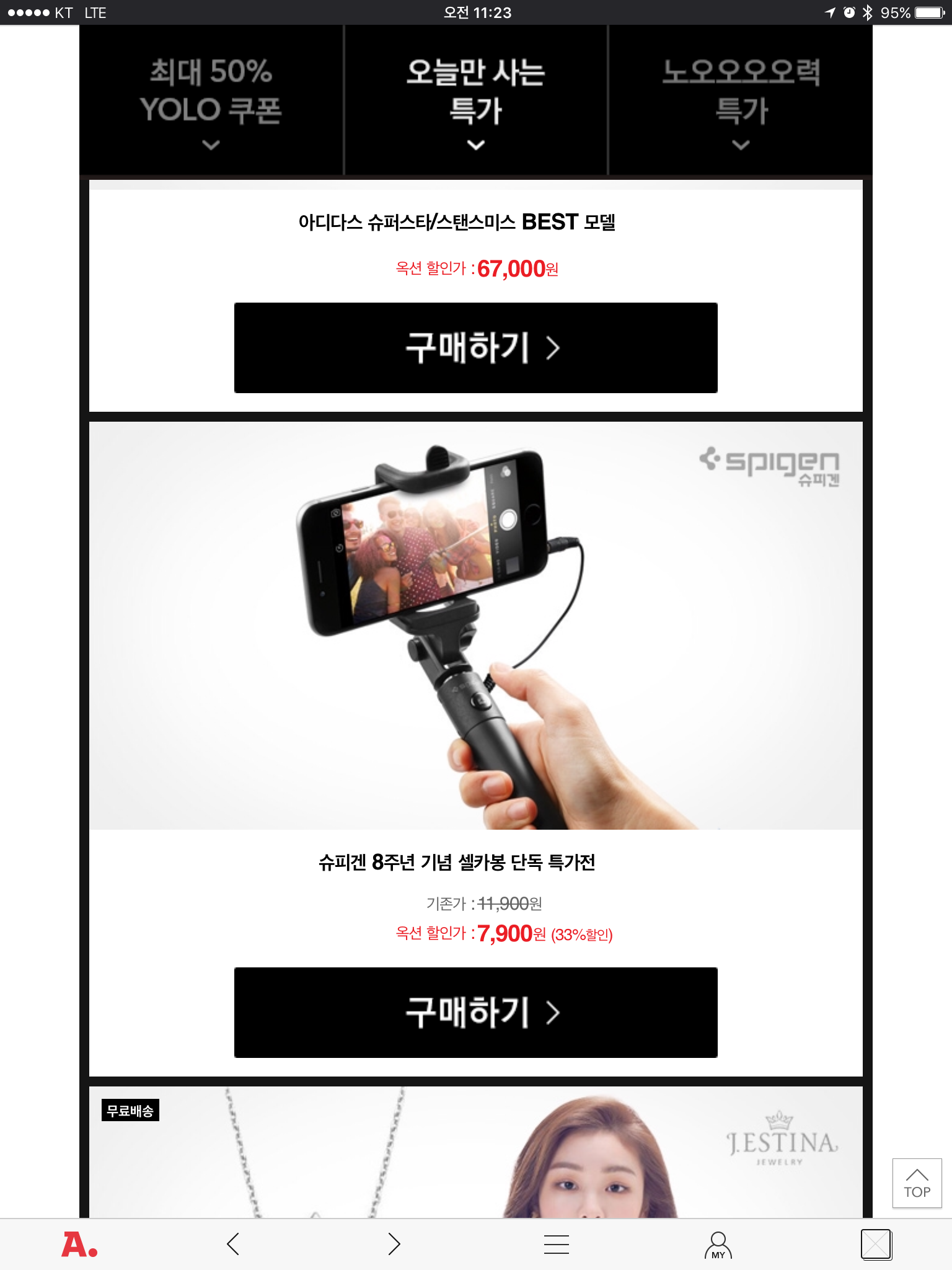 [옥션] 셀카봉 YOLO 페스티벌 (7,900/2,500)
