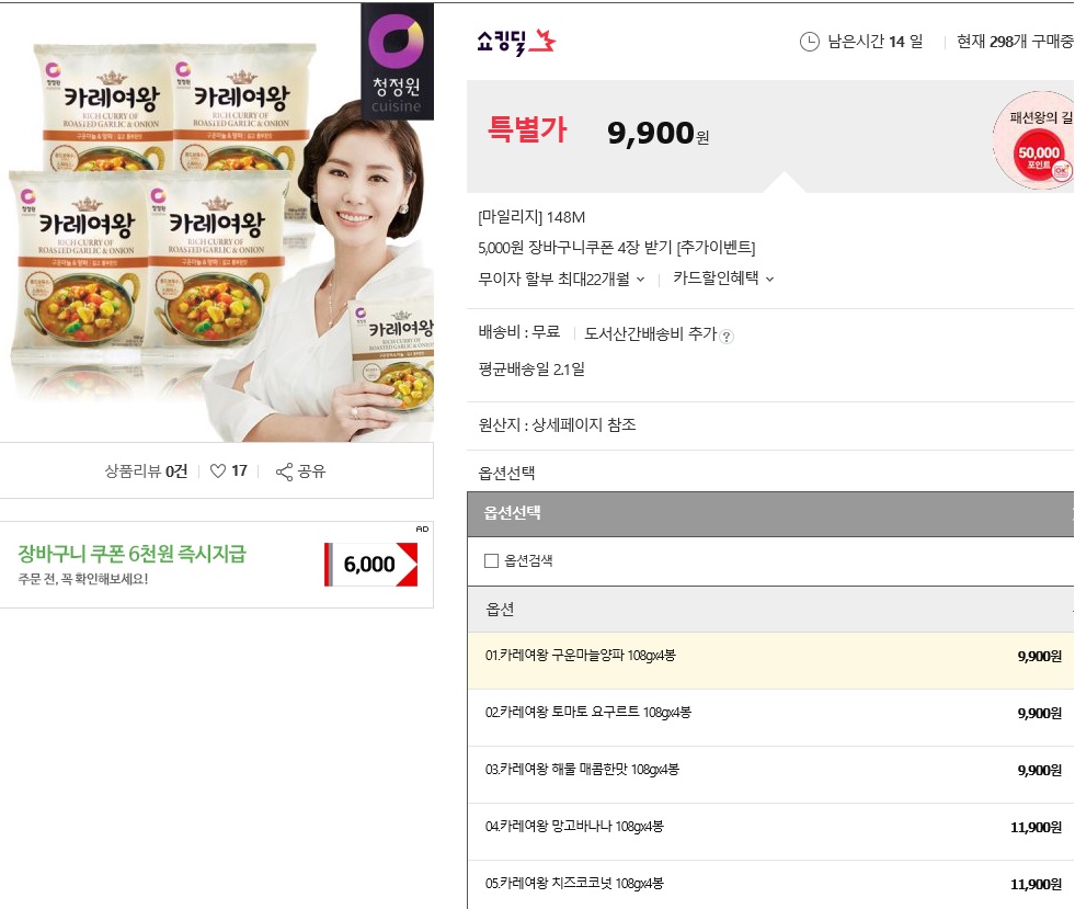 가격 좋은거 같고요. 카레여왕 맛 평도 좋고요.,