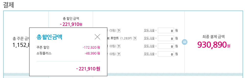 결제금액 930,890