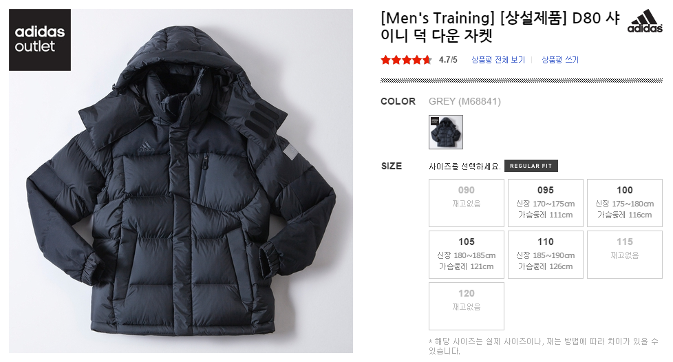 메리트 있는 가격입니다. 구하기 어려운 그레이 사이즈는