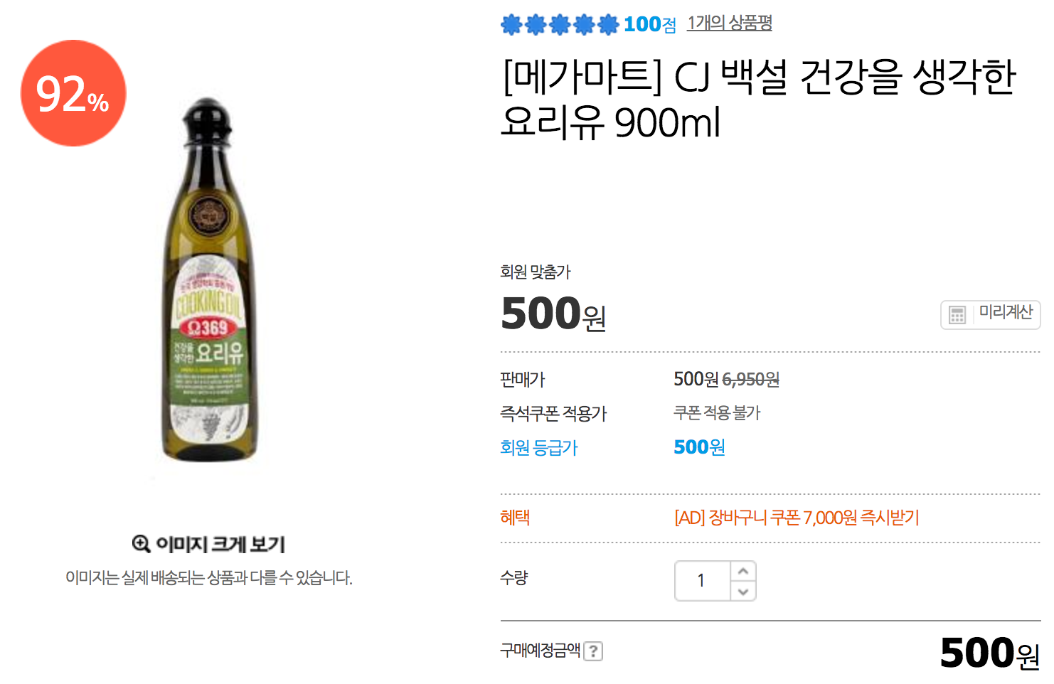 괜찮은 딜 같은데 요리유의 원재료를 찾기 힘드네요 ㅠ 베이스가 아떤 기름인지 궁금한데 블로그는 전부 바이럴글만 있고 공홈에도 원료가 안나와있네요