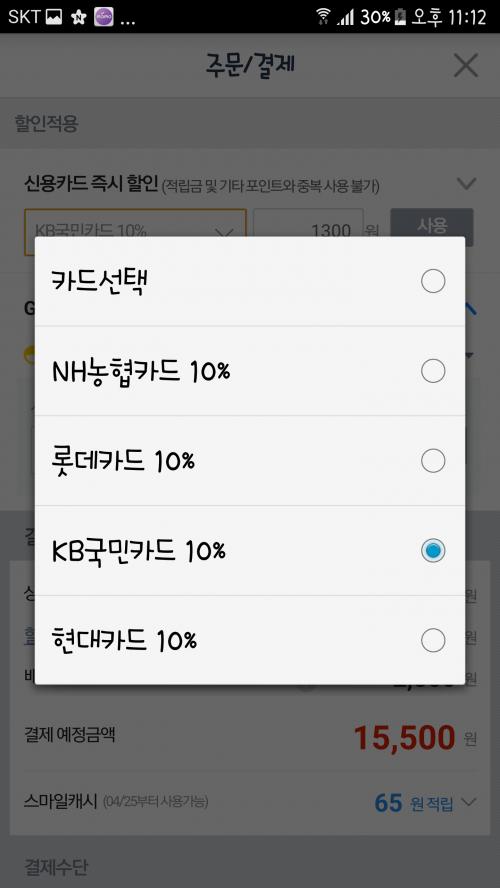 적용하면 5천원 할인 + 카드할인도 가능해서