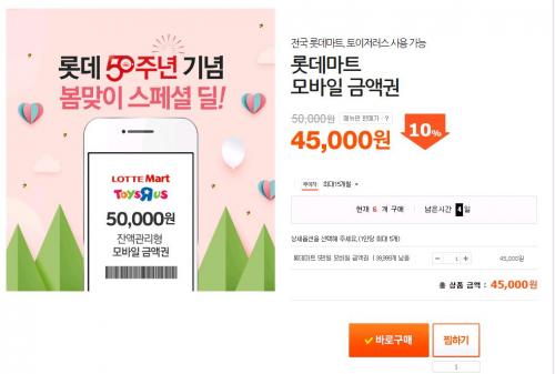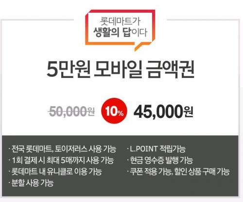 [티몬] 롯데마트모바일 5만 금액권 (45,000원/무료) > 국내핫딜