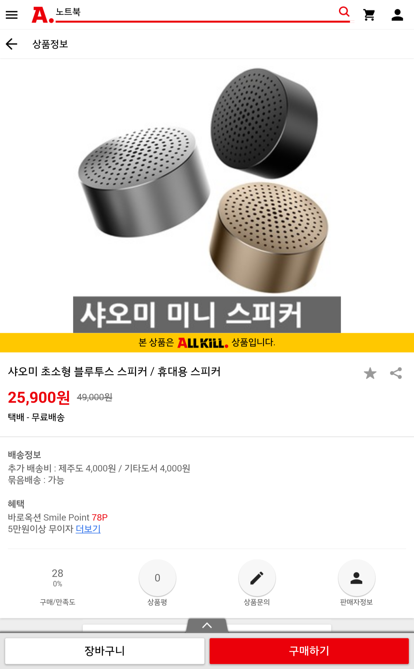 [옥션] 샤오미 미니 블루투스 스피커 (25,900/무료)