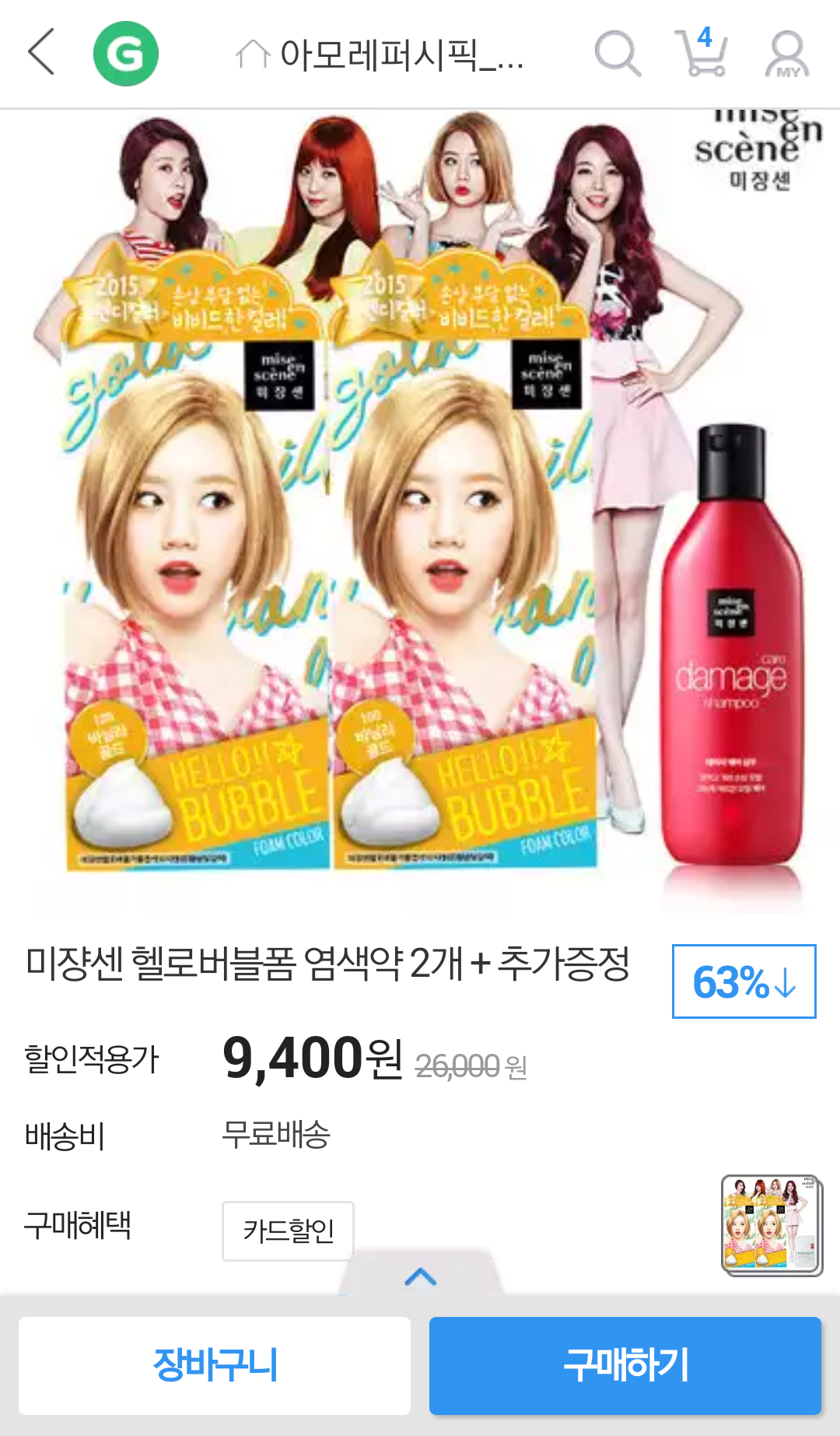 [G마켓] 미쟝센 헬로버블폼 염색약 2개 + 미장센샴푸140ml (9,400/무료) > 국내핫딜