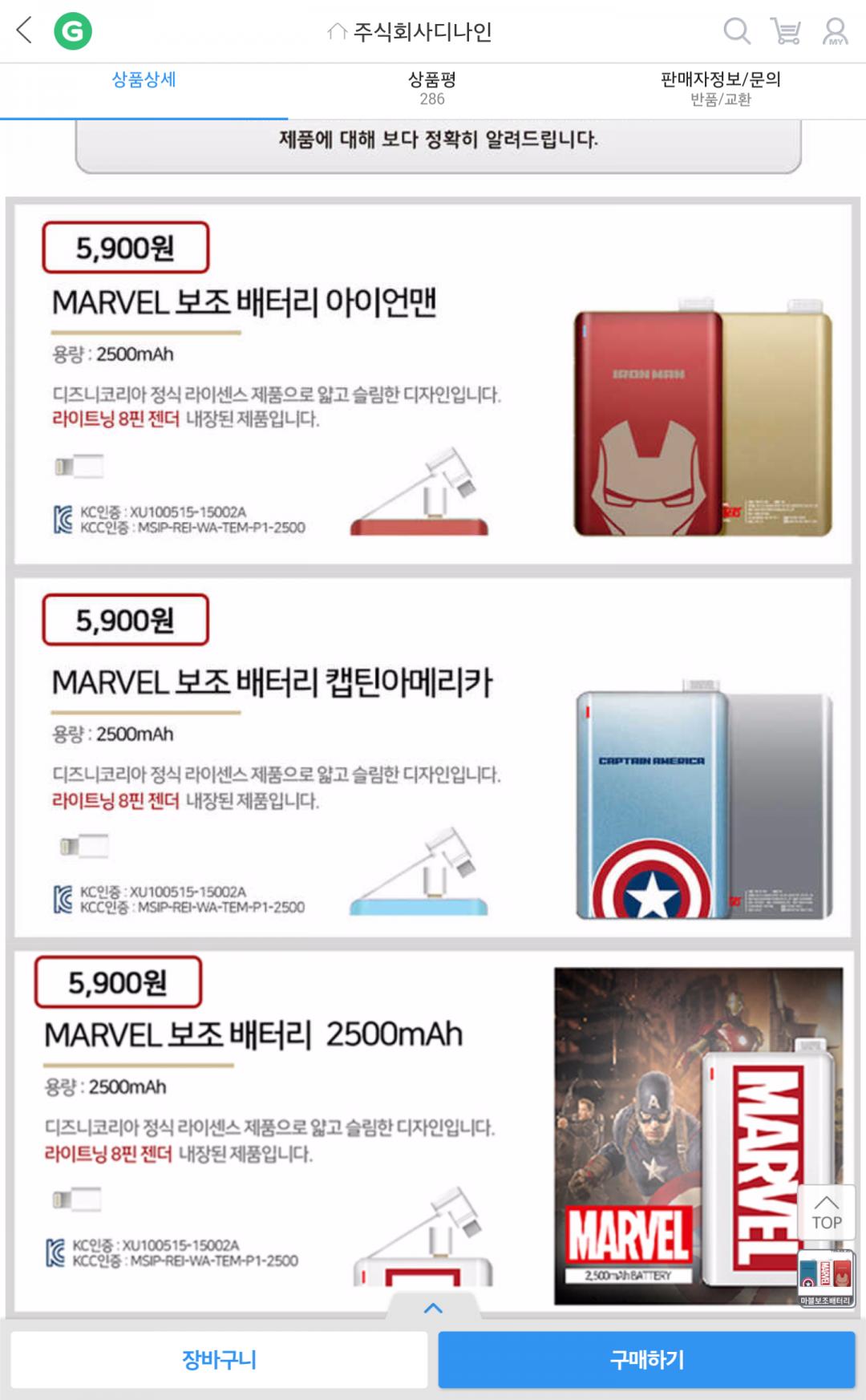 [G마켓] 아이언맨/캡틴아메리카/마블보조배터리/보조베터리 (5,900/2,500) > 국내핫딜
