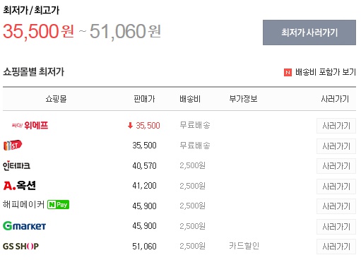 3~4인용 기준으로 다른곳보다 11번가 위메프가 싸게 팔고 있습니다.