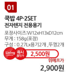 [위메프] 시밀렉스 전자렌지용기 쿡밥 4P (2,500/무료) > 국내핫딜