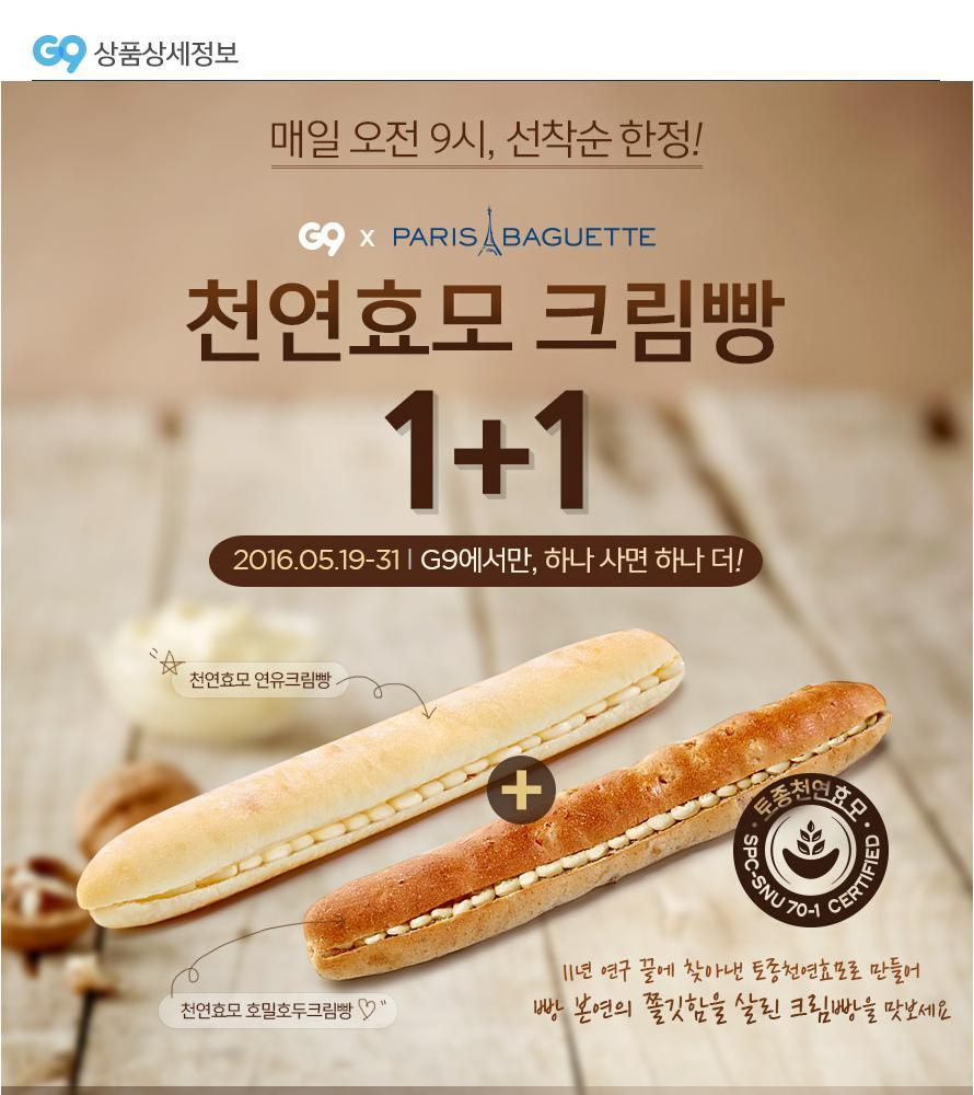 (품절)(끌올)[G9] 파리바게뜨 천연효모크림빵 1+1 (1,500/무료) > 국내핫딜
