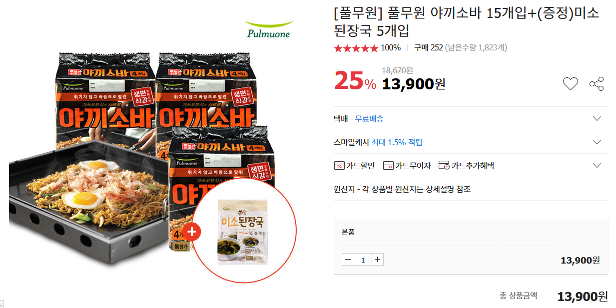 [옥션]풀무원 야끼소바 15개입+미소된장국/13900원(무료) > 국내핫딜