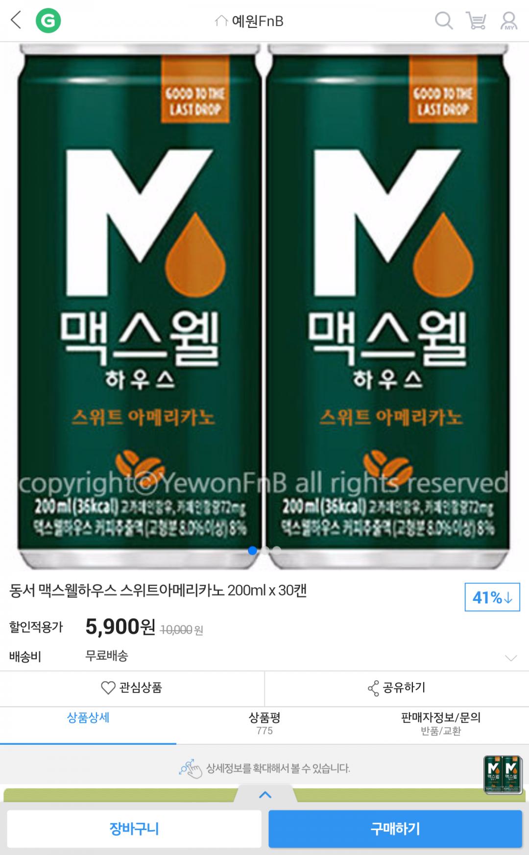 [G마켓] 맥스웰하우스 스위트아메리카노 200ml x 30캔 (5,900/무료) > 국내핫딜