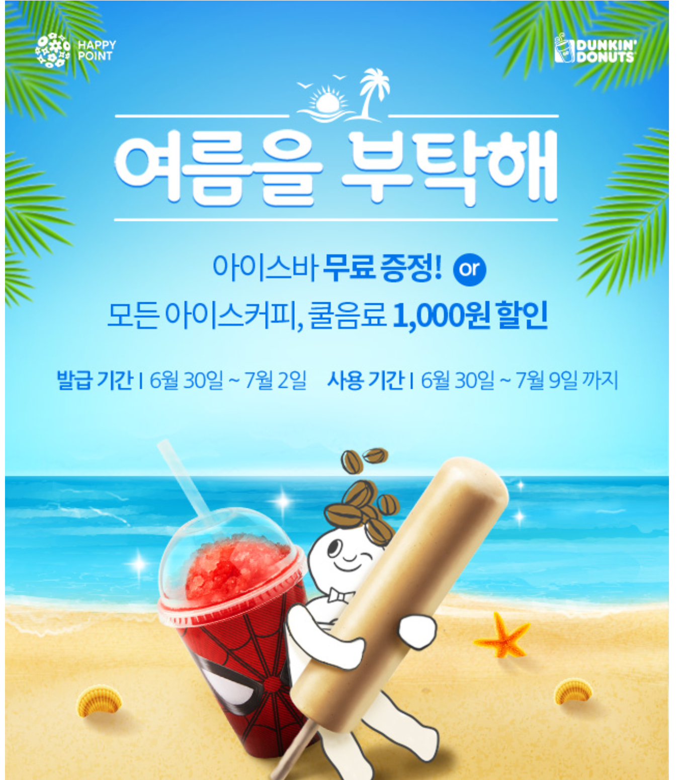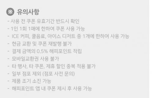 카톡,해피포인트 2개 받았는데 동시에 사용할 수 없나요? 아이스바 없는데 많다고 하니 찬음료 2천원 할인.. | ||