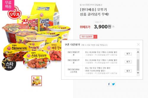 [위메프] 원더배송 오뚜기 열라면 X 20봉 외 (7,400원/무료)/스타쿠폰 20프로 할인시 5,920원 > 국내핫딜