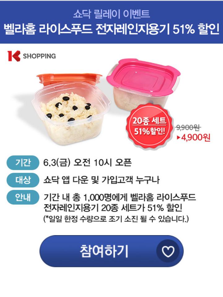 [쇼닥] 벨라홈 라이스푸드 전자렌지 용기 20종 (4,900원/무료) > 국내핫딜