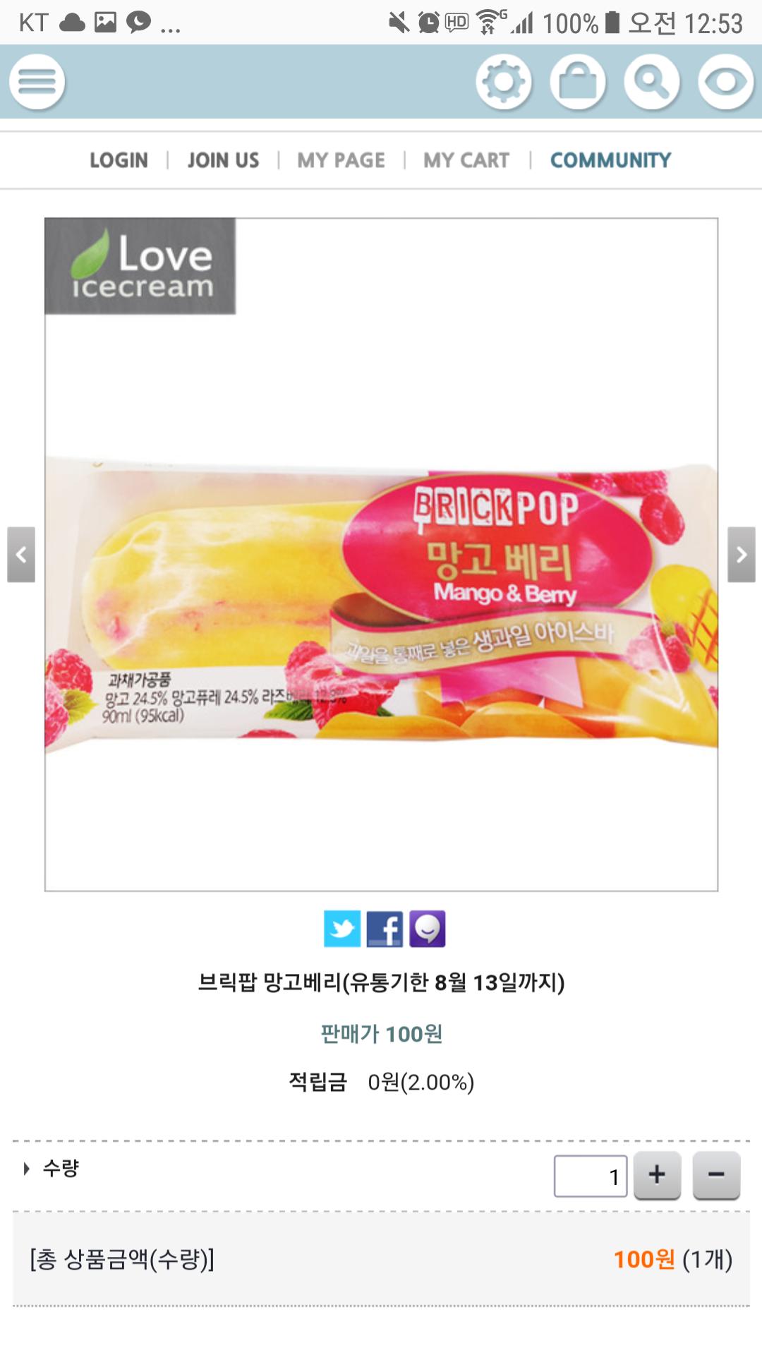 [아이러브아이스크림] 빙그레 브릭팝 망고베리(~8/13) (100/3500) > 국내핫딜