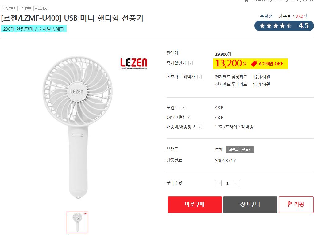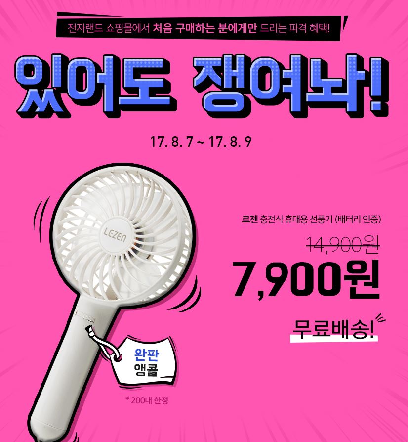 휴대용 선풍기 살까 말까 고민만 했는데 7900원이면 싼거 같아서 샀어요. 감사합니다.