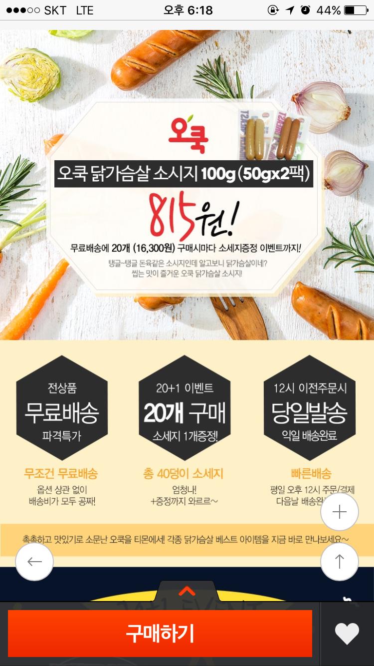 [티몬] 오쿡 닭가슴살 소시지 100g (815원/무배) > 국내핫딜