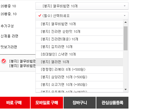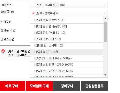 비빔면 말고 다른 종류로도 10봉 10봉 나눠서 선택 가능합니다~