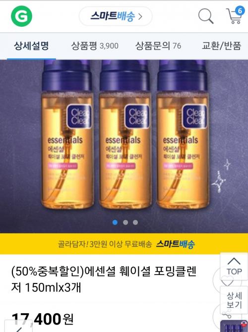 [G마켓] (50%중복할인)에센셜 훼이셜 포밍클렌저 150mlx3개 (17,400원/3,000원) > 국내핫딜