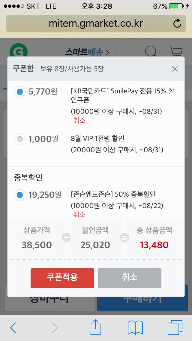 50% 쿠폰 링크 : http://mobile.gmarket.co.kr/Display/SpecialShopping?lcId=&sid=155335