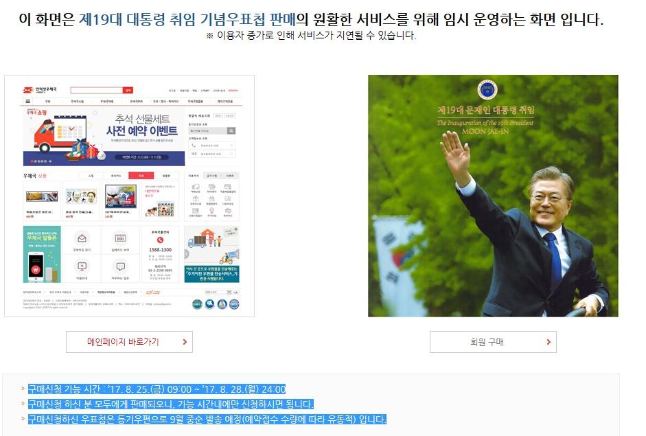 - 구매신청하신 우표첩은 등기우편으로 9월 중순 발송 예정(예약접수 수량에 따라 유동적) 입니다.