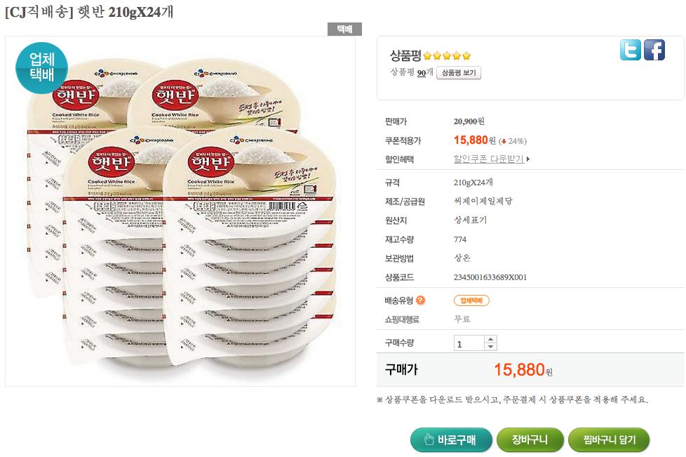 [gsi슈퍼] 햇반 210gX24개입 (15,880/무료) > 국내핫딜