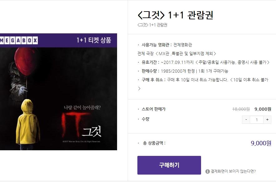 [메가박스] 그것 1+1 (9000/0)