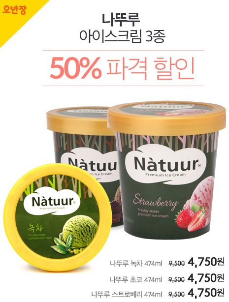 이마트몰 오반장 나뚜루 아이스크림 3종 50%--- 라지만, 비쌈... ㅡㅡ;