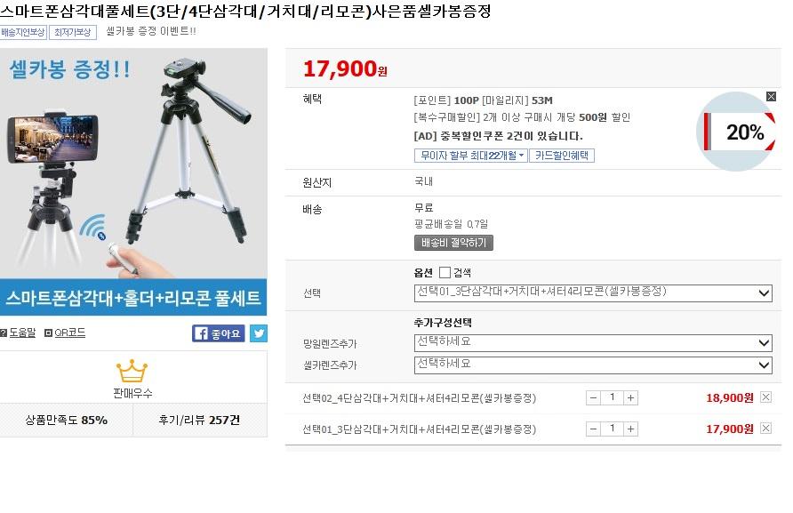 [11번가] 스마트폰삼각대풀세트(17,900/무료) > 국내핫딜