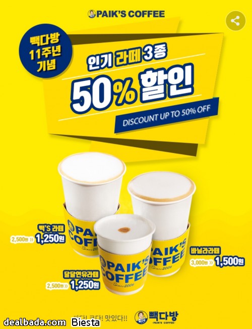 [카톡선물하기] 빽다방 인기라떼 3종 50% (다양/무료) > 국내핫딜