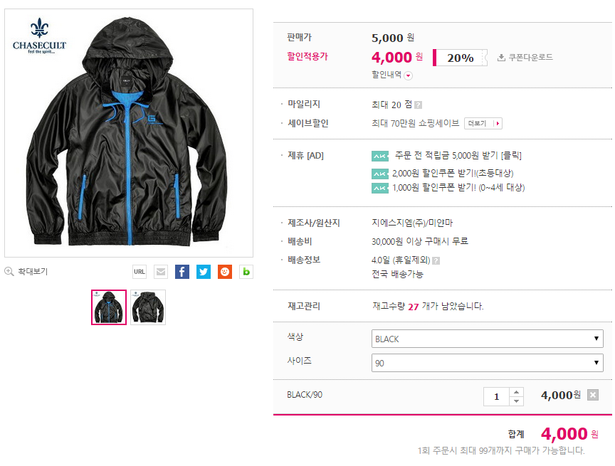 블랙에 90사이즈 밖에 안남았습니다.
