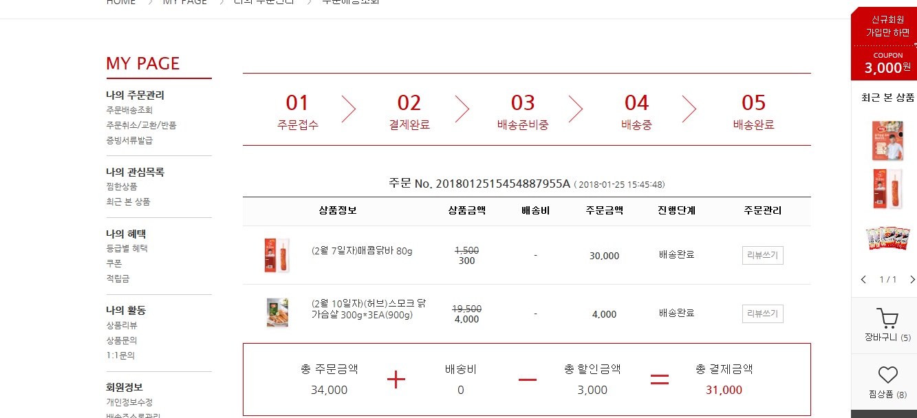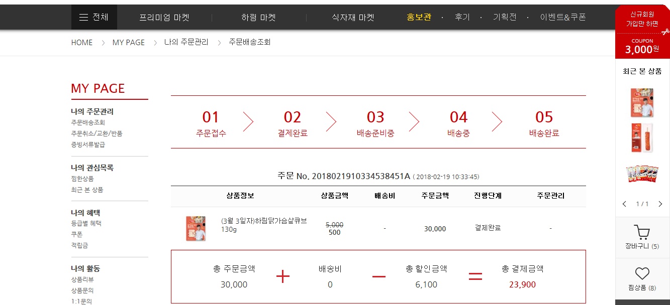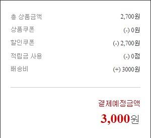 회원가입 쿠폰 3000원이 제품값에만 적용되네여