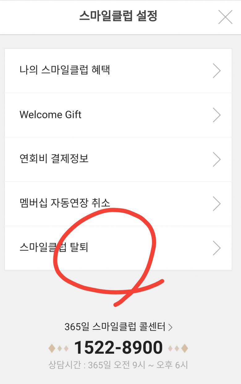 저는 맨밑에 스마일클럽 탈퇴가 없네요 |