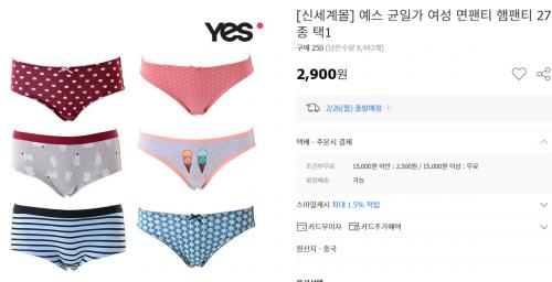 여자 빤쮸 세일하네요.. 보통 5~7천원에 형성되어 있는 상품인데, 2900원임돠..