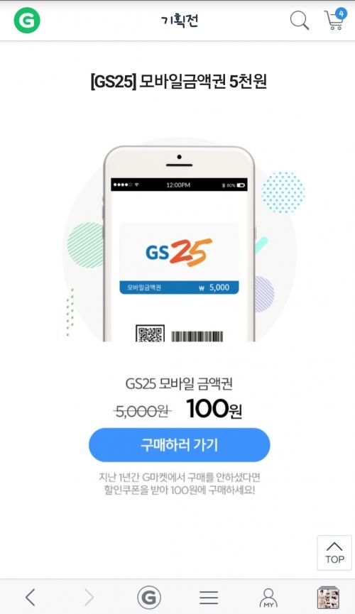 [g마켓] gs25 모바일금액권 5천원권 -1년 미구매고객(100원)