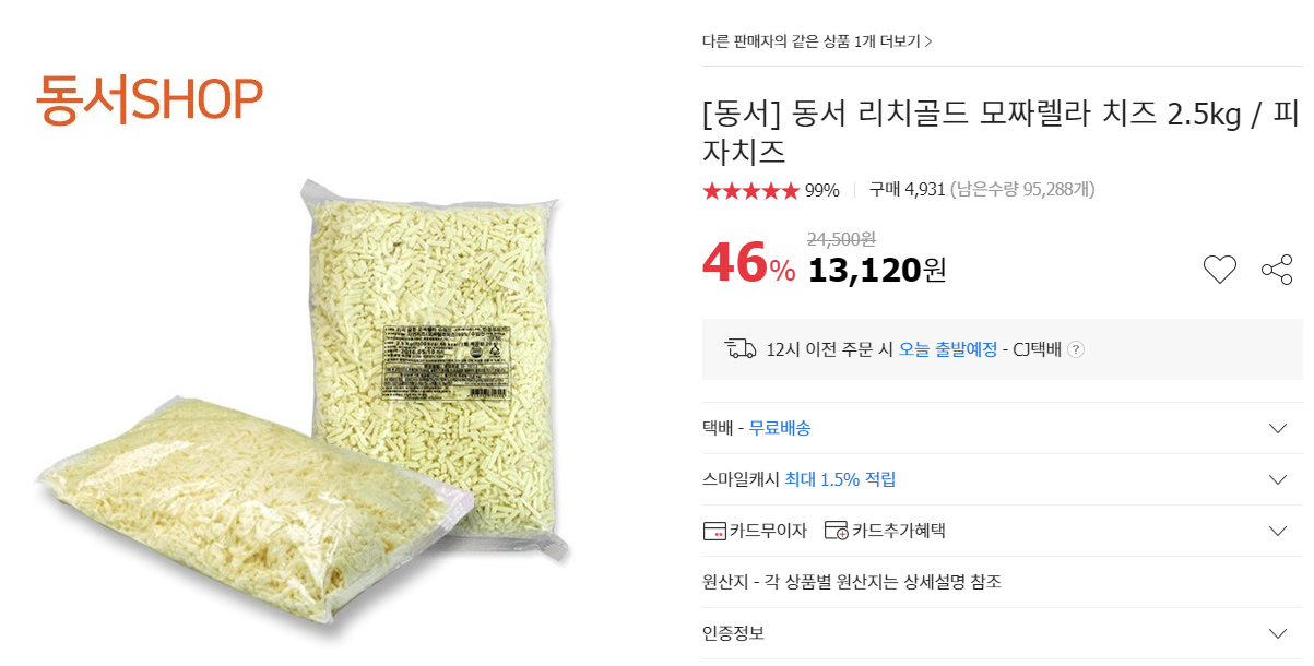 저도 하나 주문했습니다. 운좋으면 가공식품 30%쿠폰이 랜덤하게 들어와있는데 그거있는분은 더 저렴하게 살수있습니다.