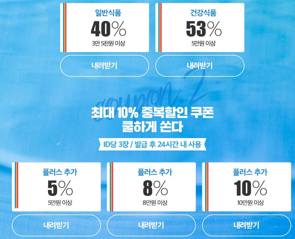 40%(3.5만원이상), 53%(CJ유산균전용) 쿠폰에