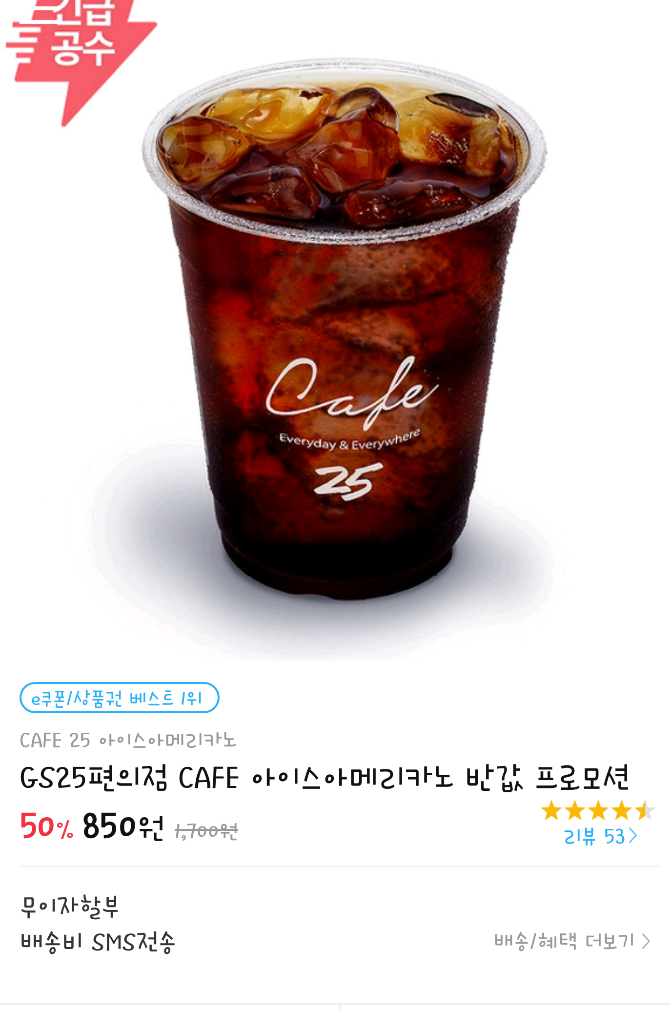 [11번가] gs25 카페아메리카노 50% (850) > 국내핫딜