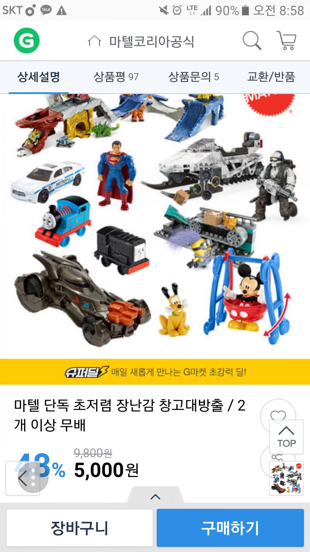 [G마켓] 마텔 단독 초저렴 장난감 창고대방출 / 2개 이상 무배 (5,000원/2,500원)