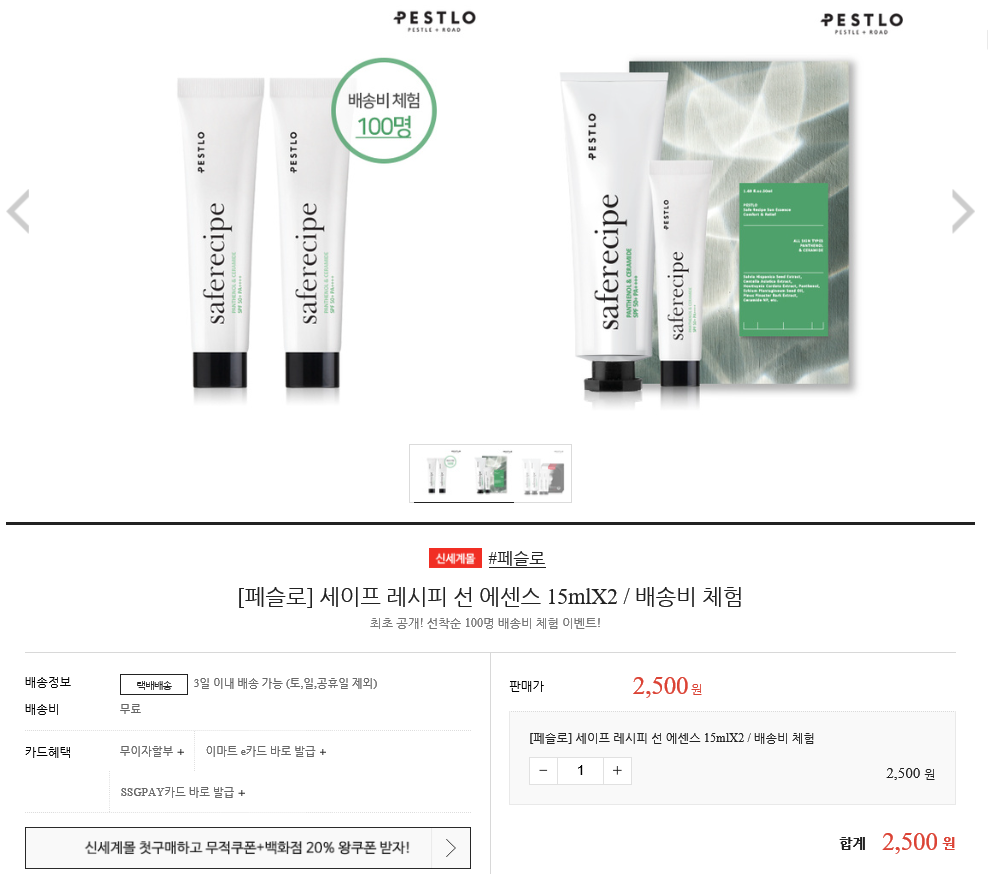 [SSG] 페슬로 세이프 레시피 선 에센스 15ml x 2 (2,500원/무료) > 국내핫딜