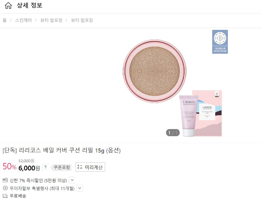 적립금 사용하려고 검색하다가 더 보태서 쿠션커버 리필 구매했습니다.