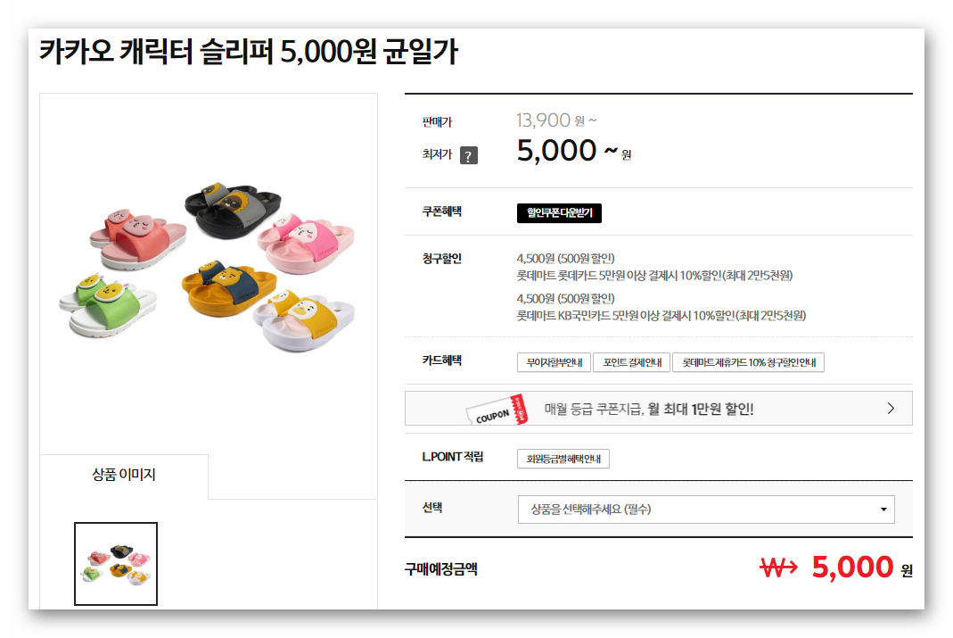 매장 마다 천원짜리랑 5천원짜리 가격이 다르고.. 천원짜리 고르면 할인이 안되네요..ㅠㅠ |