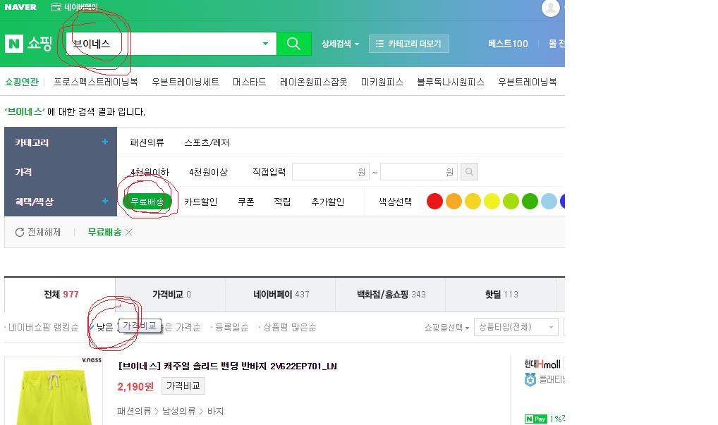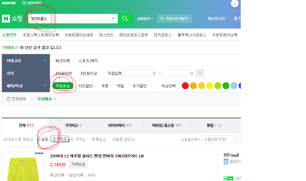 제일 많이 있는 현대몰에서 초록색 반바지 690원에 샀네요.감사합니다.ㅎㅎ