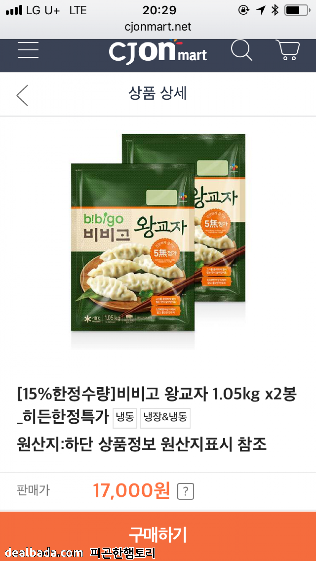 [cj온마트][카카오페이 첫결제] 비비고 왕교자 1.05*2 3세트(24,225원/무료) > 국내핫딜