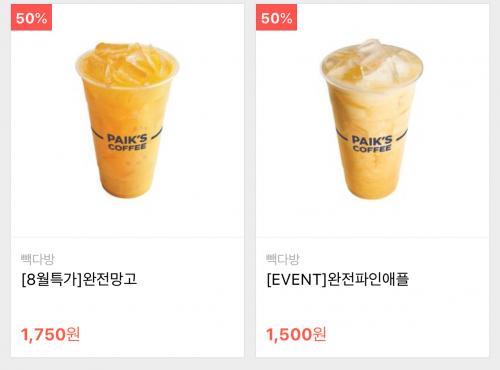 [카톡선물하기] 빽다방 완전망고/완전파인애플 50% (다양/무료) > 국내핫딜