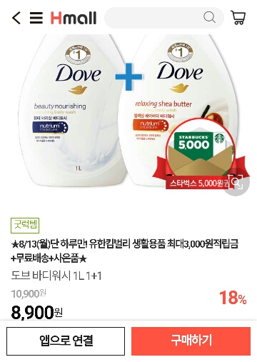 도브 샴푸 1+1 (스벅카드 5천원권 증정) 9,900원 입니다.