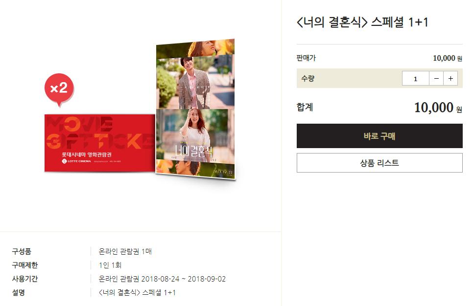 [롯데시네마] 너의 결혼식 1+1 (10,000/무료) > 국내핫딜