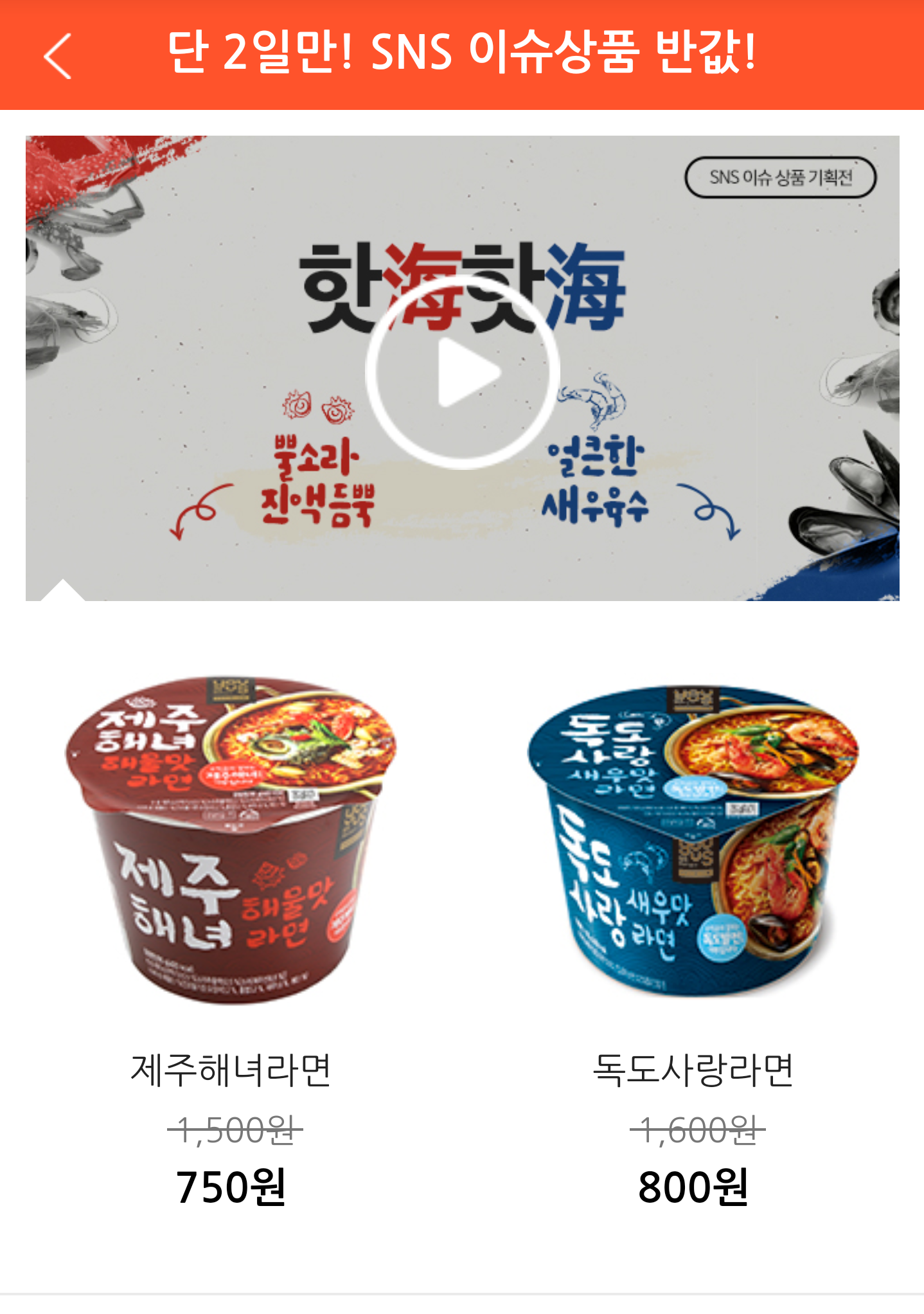 [나냉] 해녀라면,독도라면 반값세일 (750원~) > 국내핫딜