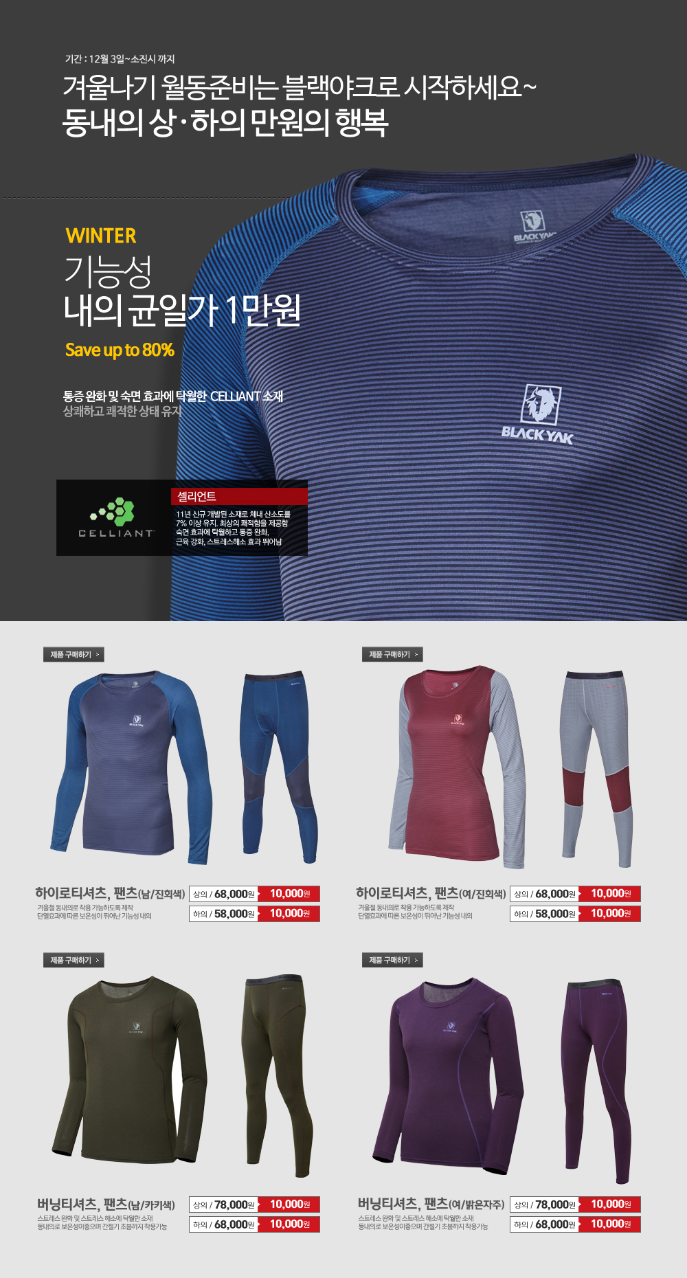 [블랙야크몰] 동내의 상, 하의 각 (10,000/2,500)