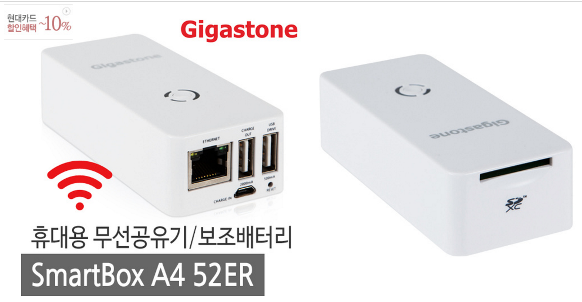 외장배터리 기능에다가, 무선공유기도 되고, 외장하드 연결하면 무선으로 외장하드에도 연결이 되는 제품이라고 해요.